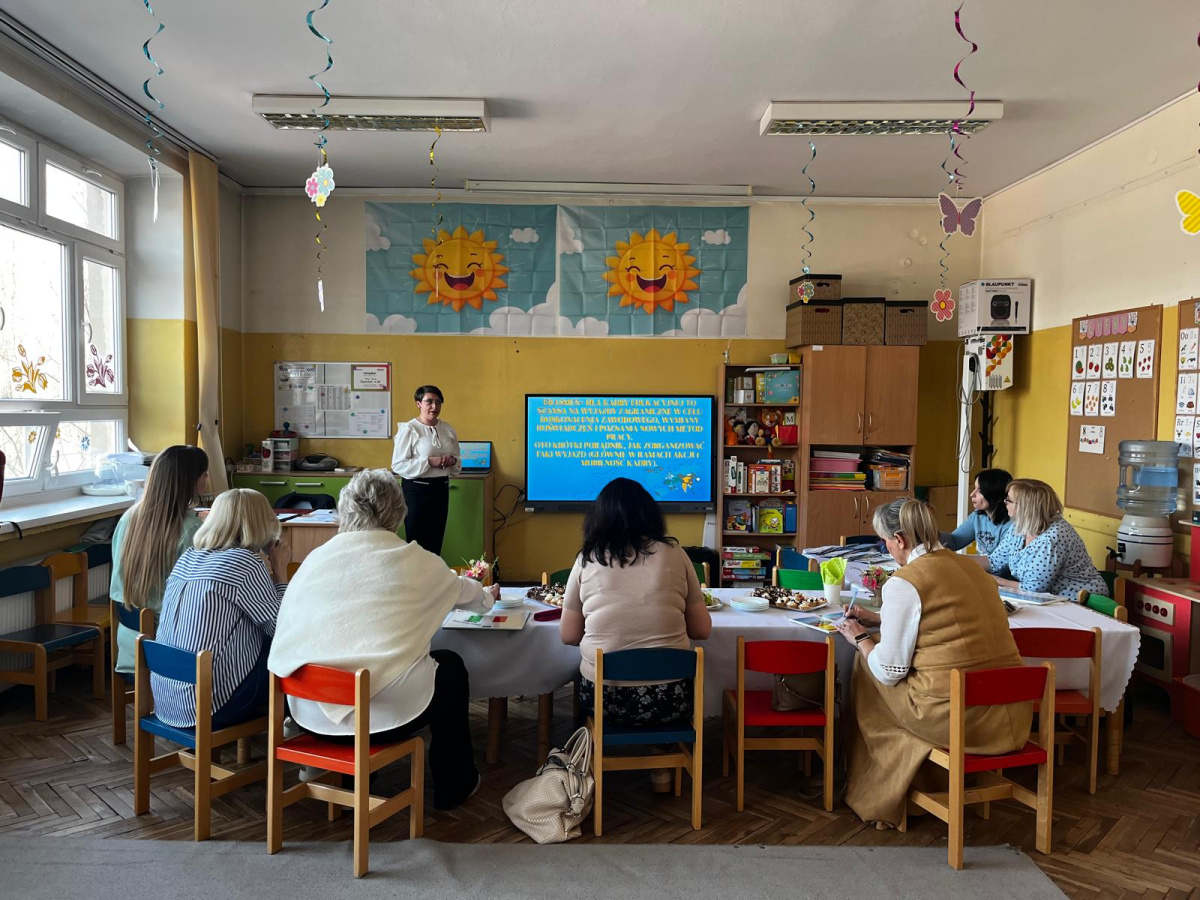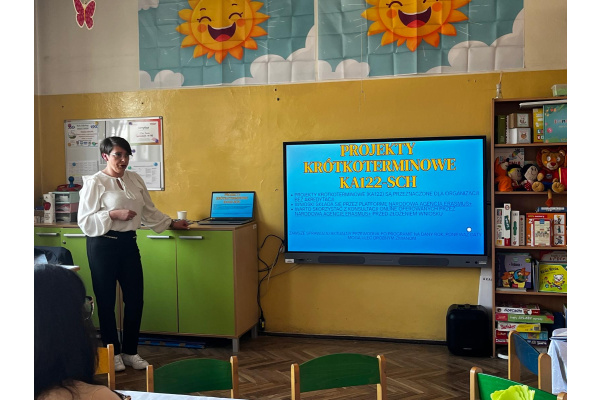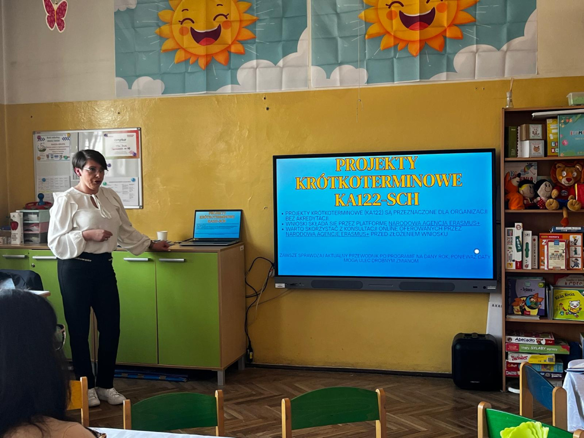 W naszym przedszkolu odbyło się spotkanie informacyjno-szkoleniowe poświęcone realizacji projektów w ramach programu Erasmus+, skierowane do przedstawicieli innych placówek oświatowych.