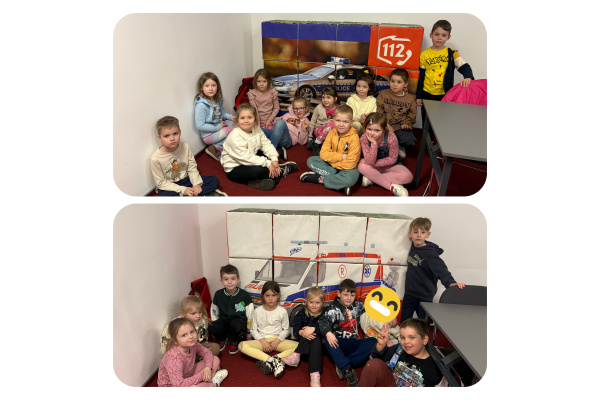 Dzieci uczestniczyły z zajęciach edukacyjnych z pierwszej pomocy, poznały na czym polega zawód operatora ratownictwa oraz utrwaliły zasady bezpieczeństwa i numery alarmowe.
