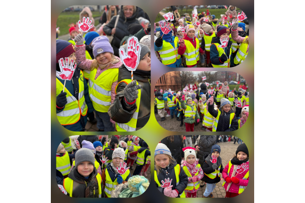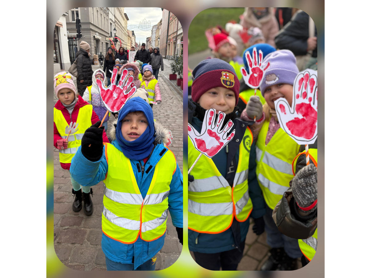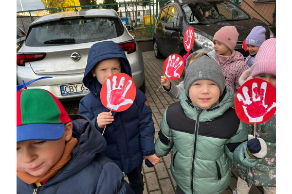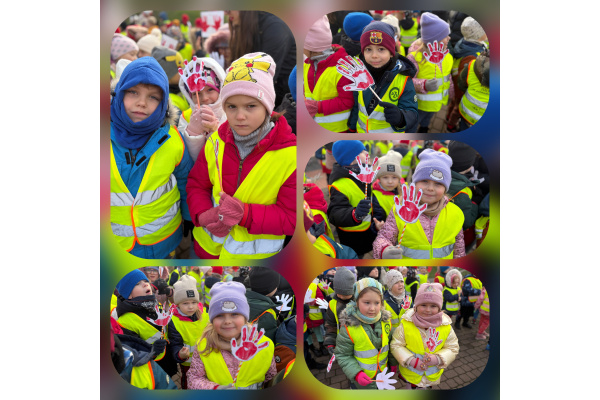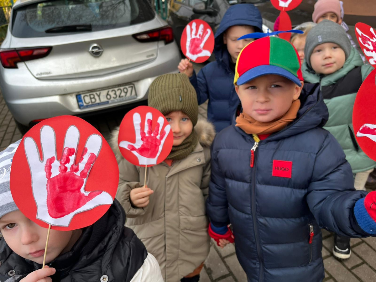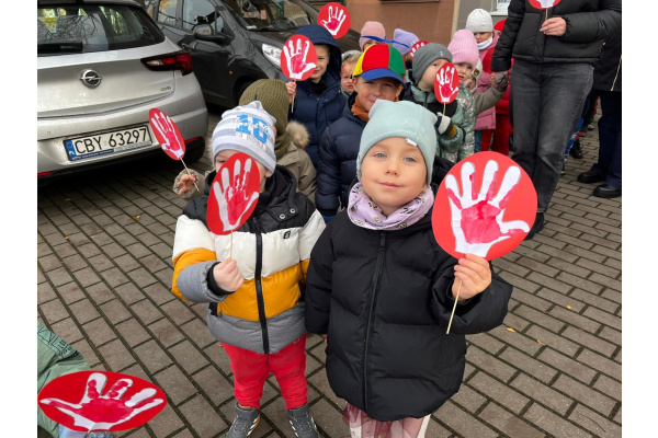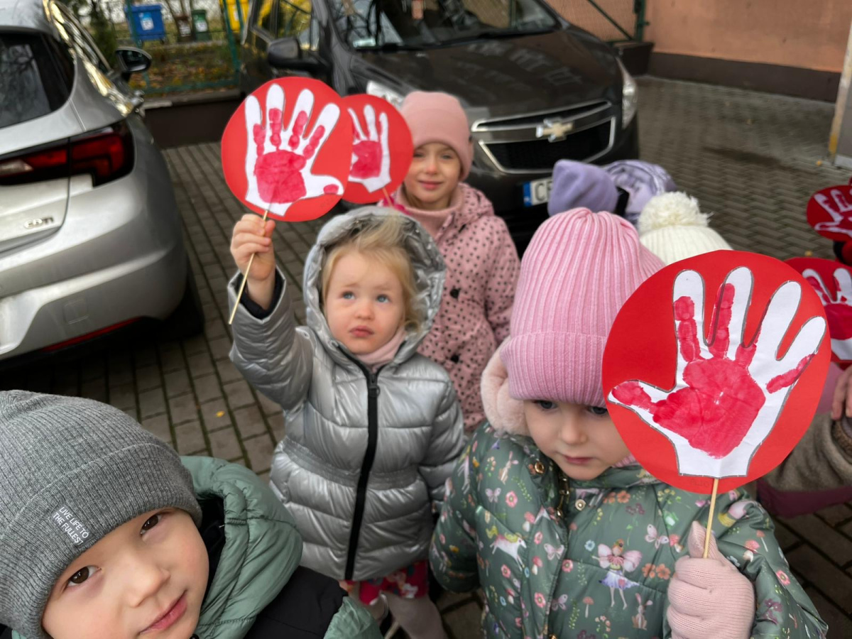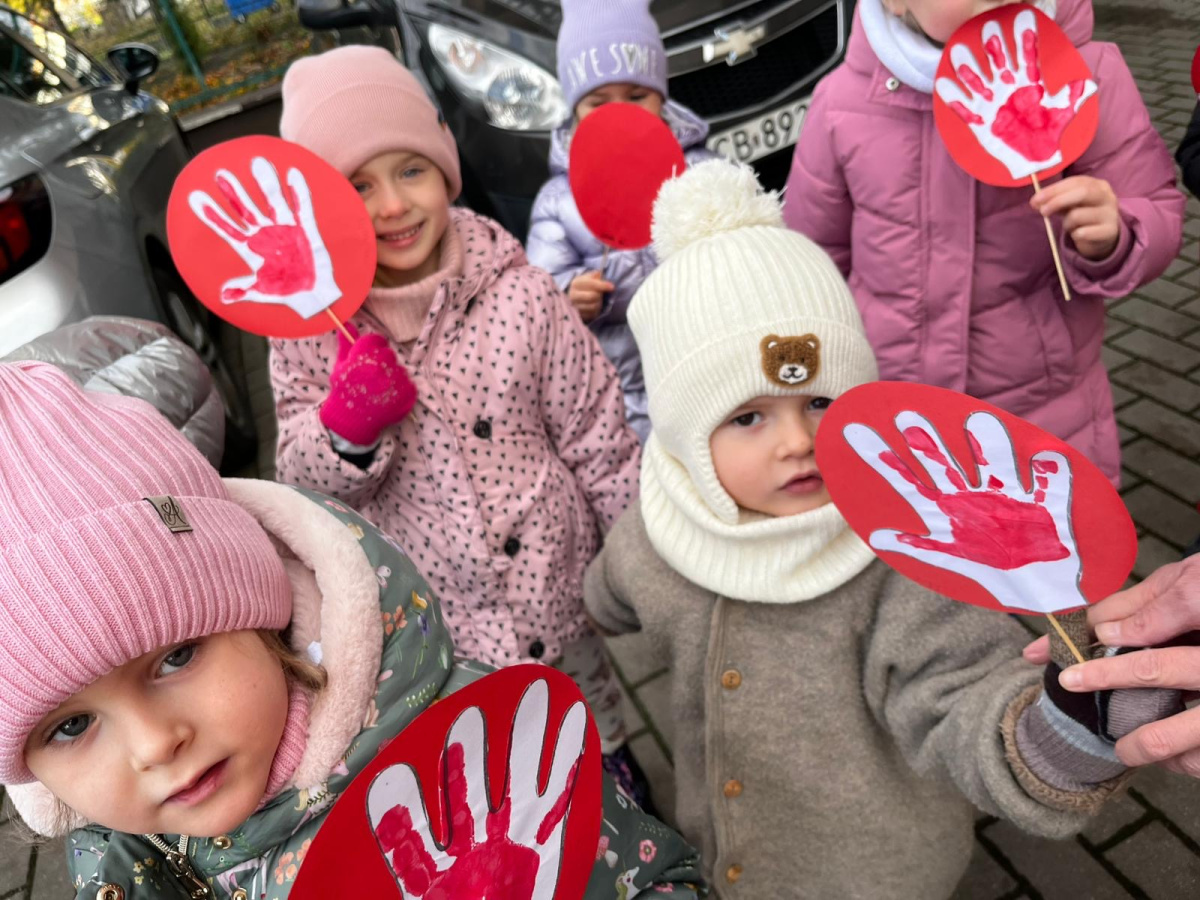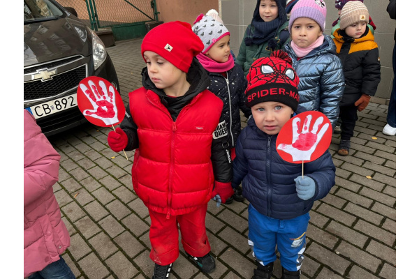 1) Kulminacją działań był marsz przeciwko przemocy, w trakcie którego wszystkie dzieci i pracownicy przyszli ubrani na czerwono – kolor symbolizujący sprzeciw wobec wszelkich form krzywdzenia. Wspólne przejście było okazją do podkreślenia, jak ważne jest wspieranie innych i reagowanie, gdy dzieje się komuś krzywda.