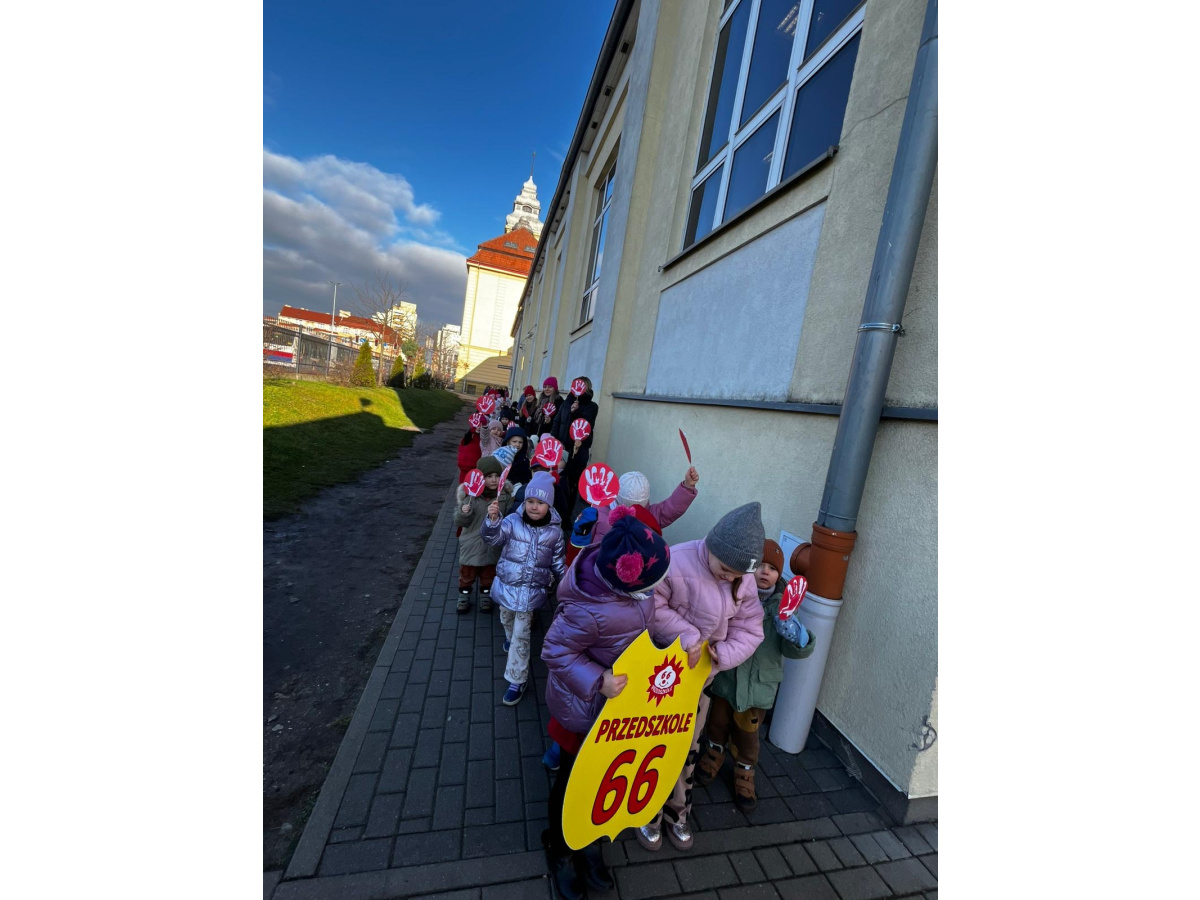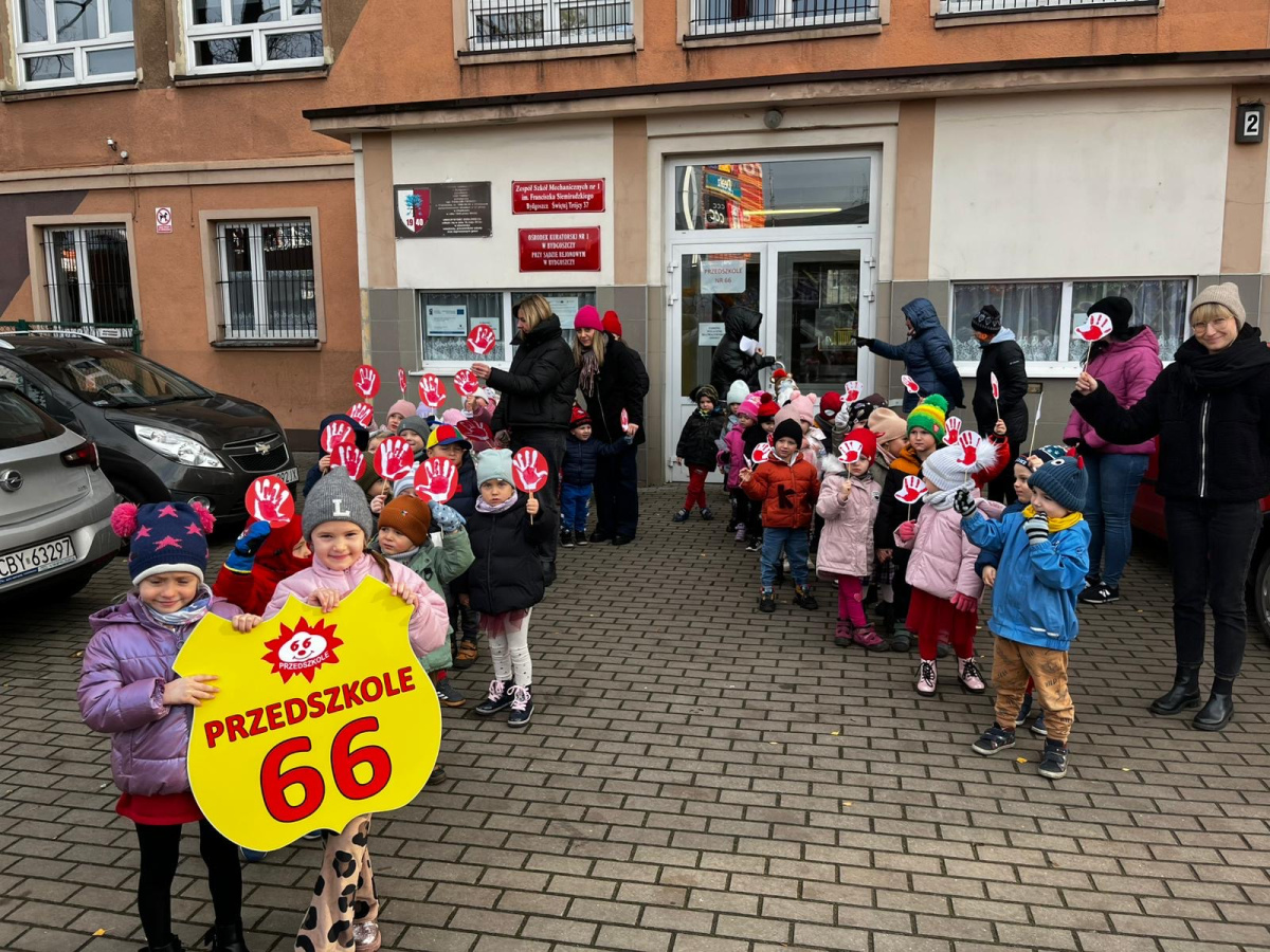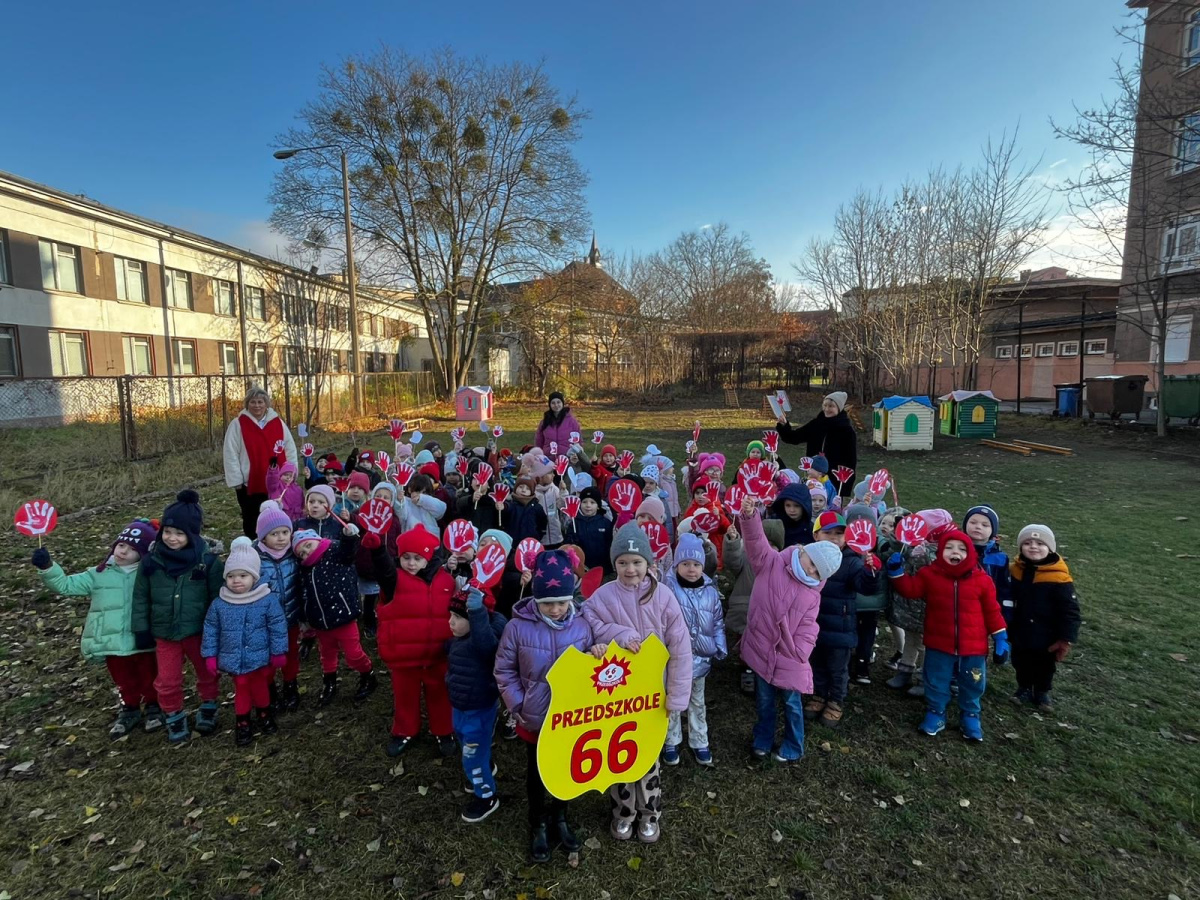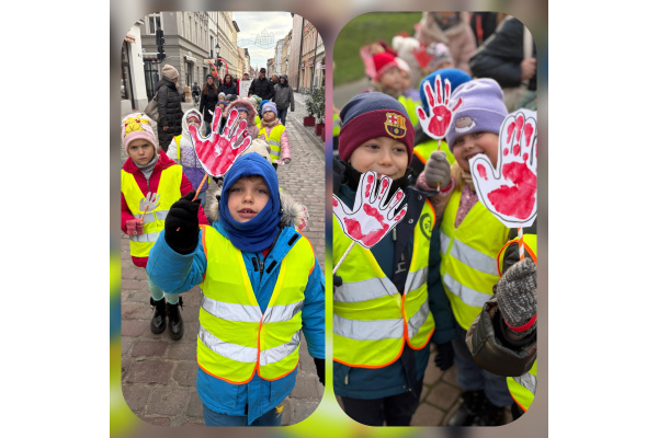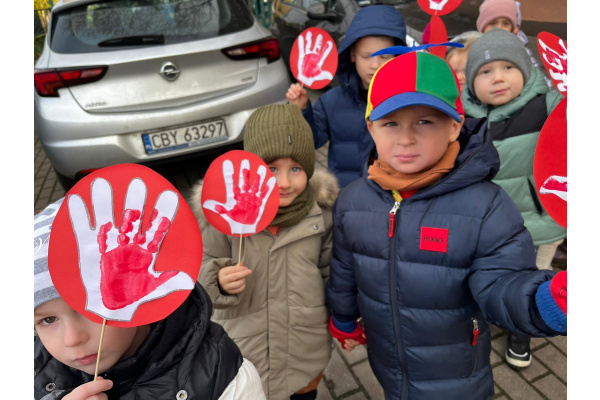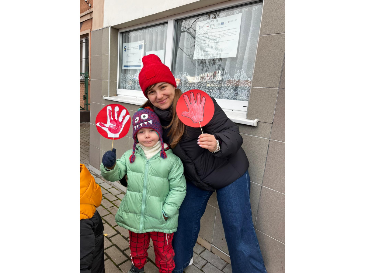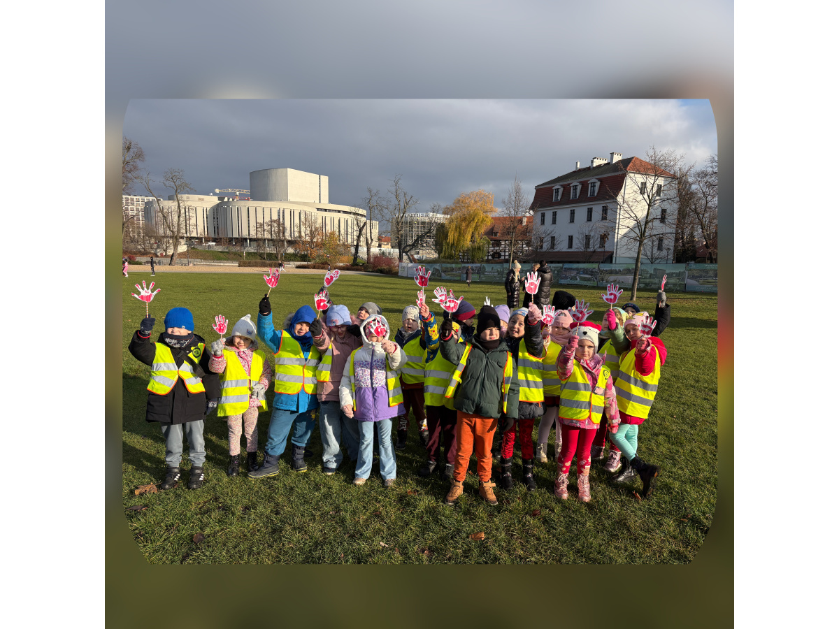 1) Kulminacją działań był marsz przeciwko przemocy, w trakcie którego wszystkie dzieci i pracownicy przyszli ubrani na czerwono – kolor symbolizujący sprzeciw wobec wszelkich form krzywdzenia. Wspólne przejście było okazją do podkreślenia, jak ważne jest wspieranie innych i reagowanie, gdy dzieje się komuś krzywda.