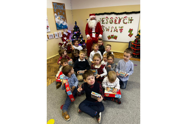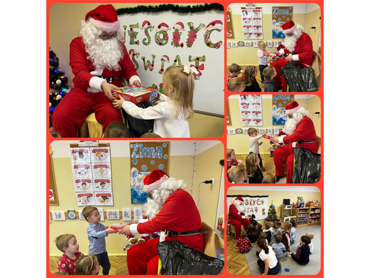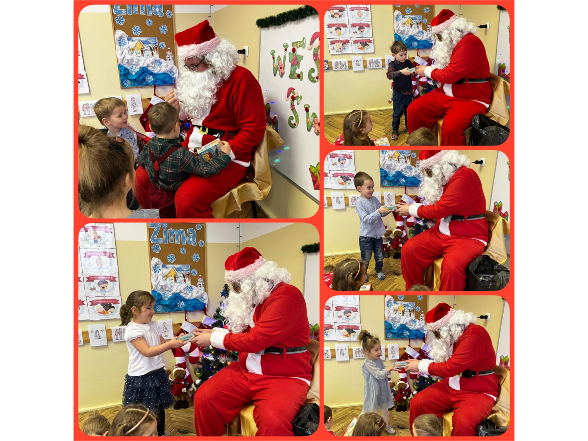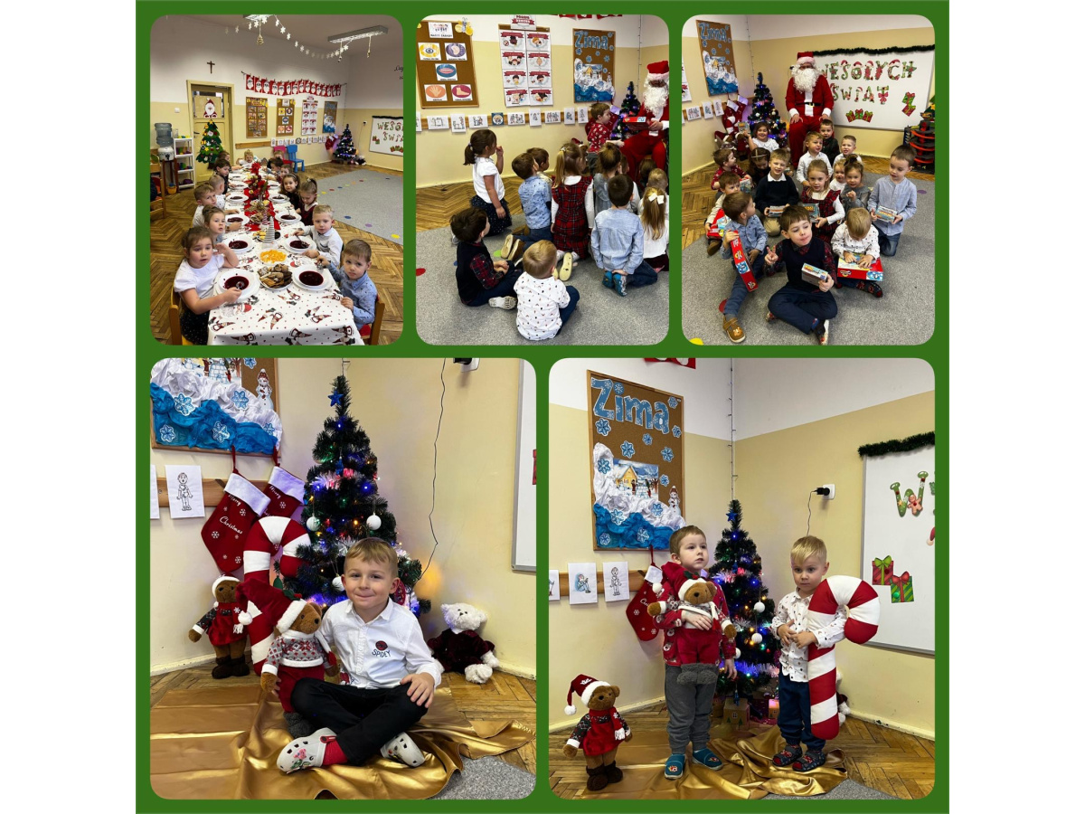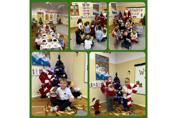 17 grudnia obchodziliśmy przedszkolną Wigilię. Odwiedził nas także długo wyczekiwany gość wraz z workiem pełnym prezentów. Dzieci każdego roku poznają tradycje i zwyczaje świąteczne, aktywnie uczestniczą w przygotowaniach: wykonują ozdoby, łańcuchy, prezenty świąteczne dla najblizszych. W dzień przedszkolnej Wigilii panowała radosna, ożywiona atmosfera. Tego dnia dzieci dzieliły się opłatkiem oraz śpiewały kolędy przy choince. Na koniec wszyscy wspólnie zjedliśmy tradycyjne wigilijne potrawy. Dziękujemy za te piękne chwile. Wesołych Świąt!!!